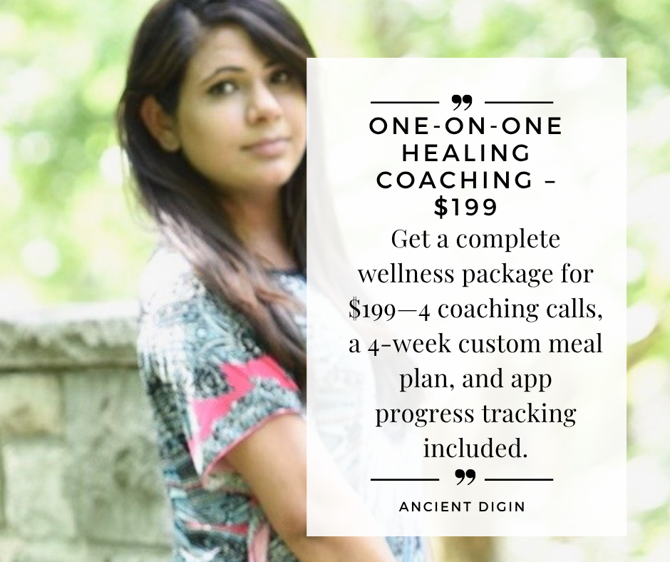 Upgrade to 1-on-1 coaching and receive a personalized diet plan tailored to your health goals, designed using modern nutrition science and ancient food wisdom.